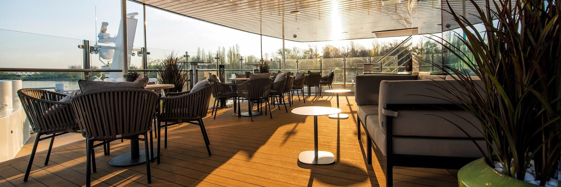 Avalon's Flex Dining® puts a whole new meaning to "Where should we eat?" with your choice of when and where you dine on board. Mix it up with a variety of menus and venues without the strict schedules that cut into your fun. Dine in style in your ship's spacious and elegant glass-walled Panorama Dining Room or mix it up with bite-sized delights in the cozy Panorama Bistro. Al fresco dining more your style? Grab a complimentary picnic basket for a tasty takeaway on shore, pull up a chair for an al fresco lunch on the observation deck, or savor sizzling selections atop the Sky Deck with specialties served hot off the Sky Grill! Need an afternoon nosh? Be our guest for elegant tea service each afternoon in the Panorama Bistro to satisfy your sweet tooth!